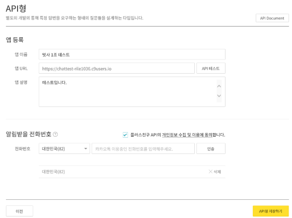 좌측에 스마트 채팅을 클릭하면 2가지 형태가 있는데 저는 API 형태를 사용하였습니다.