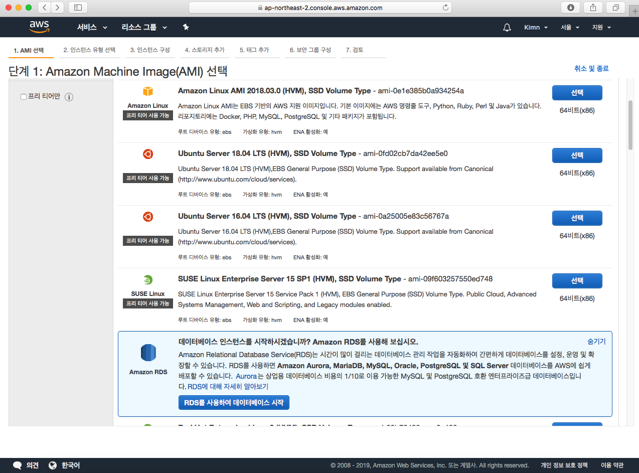 저는 그 중 Ununtu Server 16.04 LTS (HVM) 을 선택하였습니다.