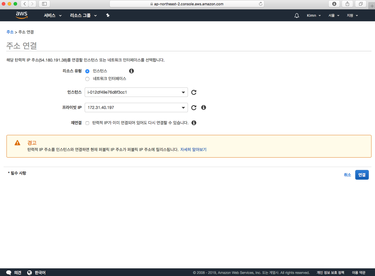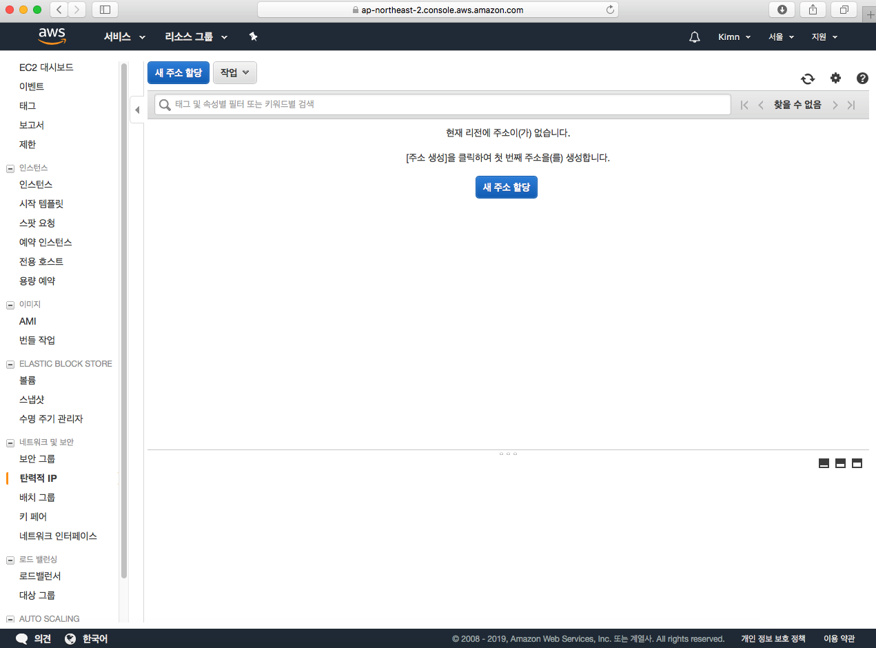 새 주소를 할당하게 되면 탄력적 IP 주소를 얻게 됩니다.