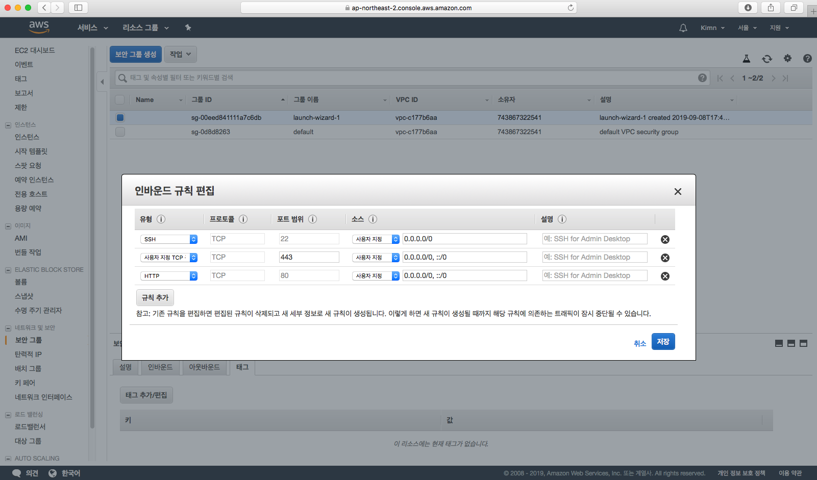 웹 서버이기에 HTTP, SSH 자동으로 2개씩 잡힙니다.