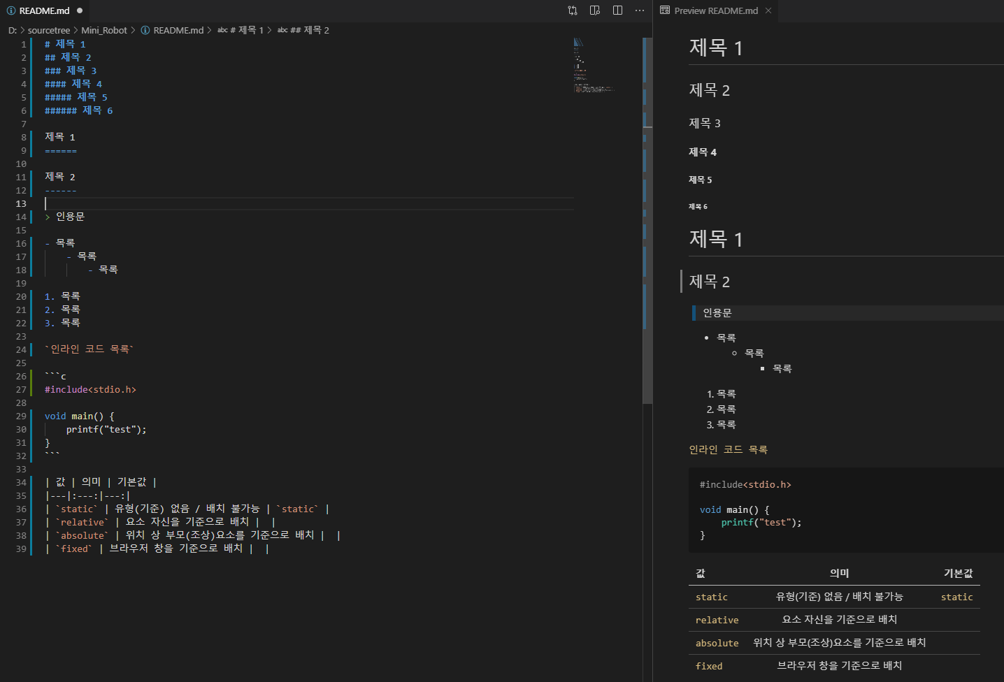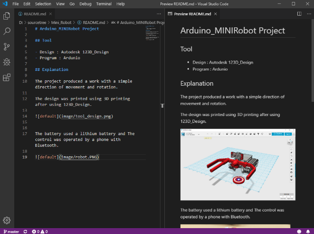 그러다가 GitHub를 Push하는데 Readme 파일을 작성 시 Visual Code를 사용해보니 매우 용이한 장점이 있었습니다.