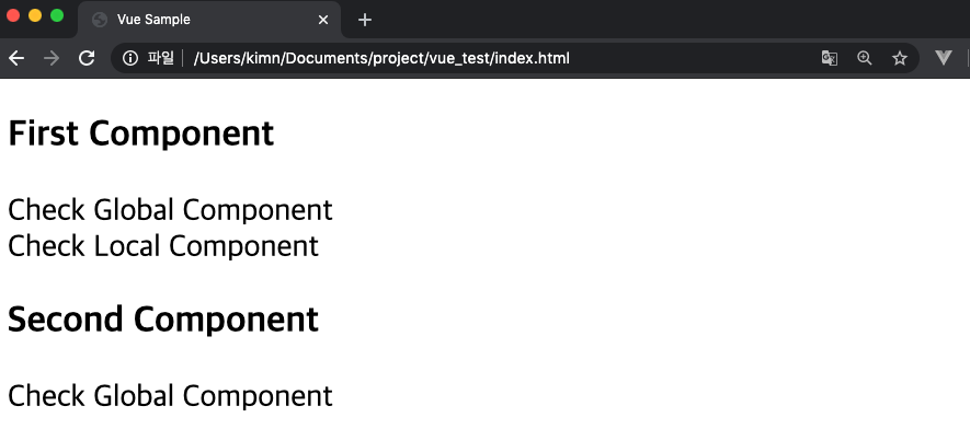 똑같이 전역, 지역 컴포넌트를 모두 등록하여 실행시켜보겠습니다.
