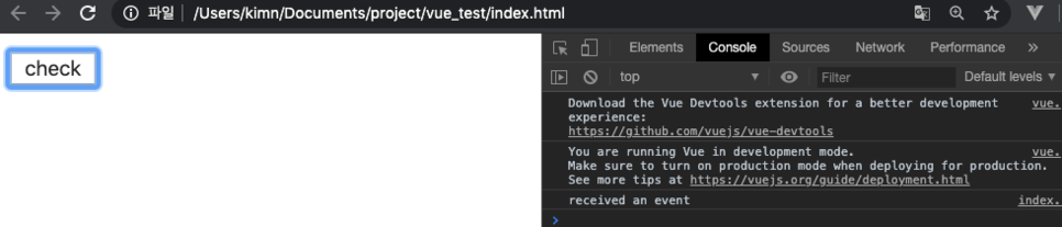 v-on 속성을 이용해 하위 컴포넌트에서 발생한 이벤트를 지정하여 호출될 상위 컴포넌트의 메서드를 지정합니다.