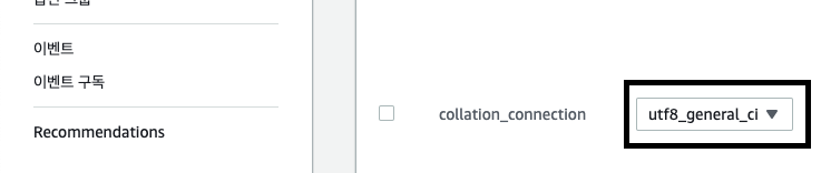 collation_connection 값을 utf8_general_ci 로 변경하였습니다.