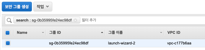 인스턴스 보안 그룹을 선택 후 [보안 그룹 생성]을 눌러 생성합니다.