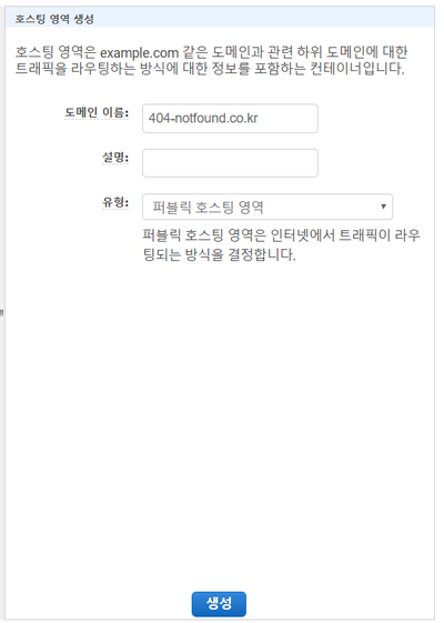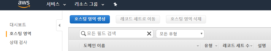 호스팅 영역에 들어가 생성을 눌러줍시다.